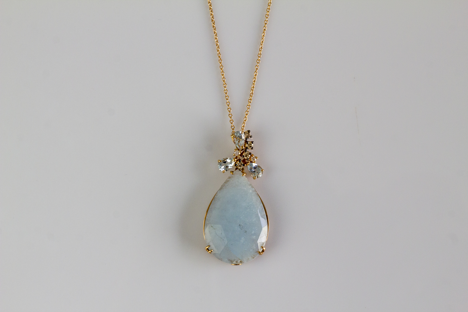 [Nessun Autore] Pink 18kt gold necklace, gr 5.65. Diamonds cts 0.05 and aquamarine. Total cts 17.54. . .