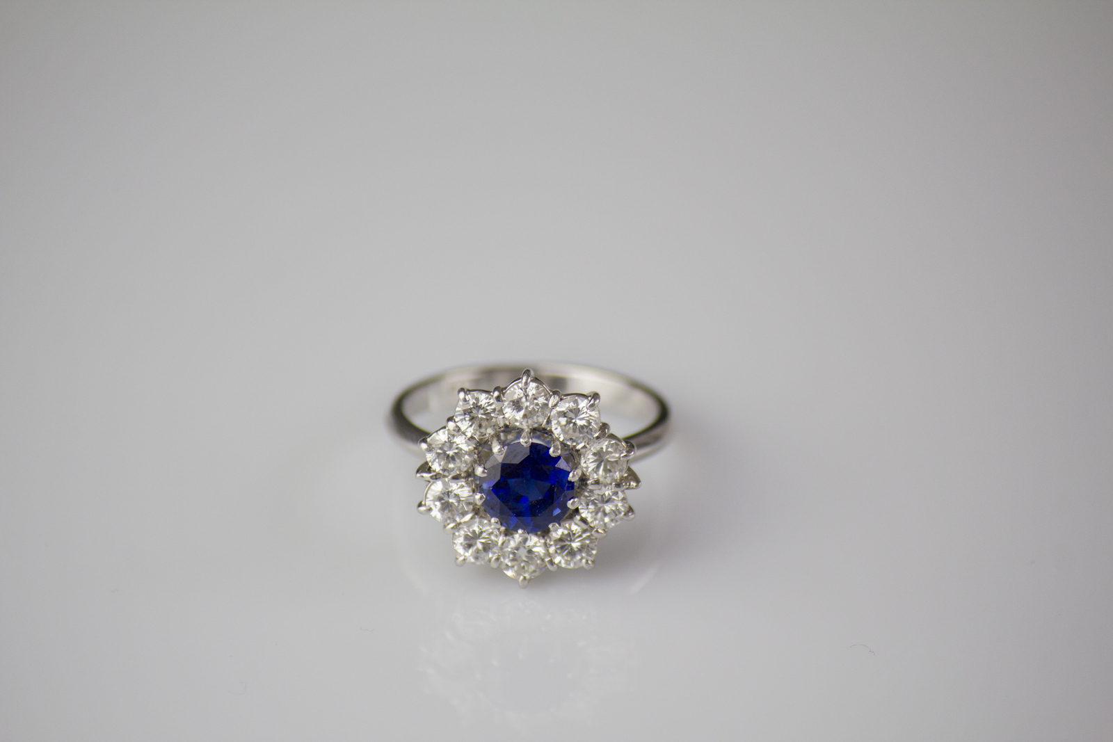 Lot 157 | Anello in oro bianco18kt gr, 5.60. Zaffiri cts 1.02. Diamanti cts 1.40. . ....