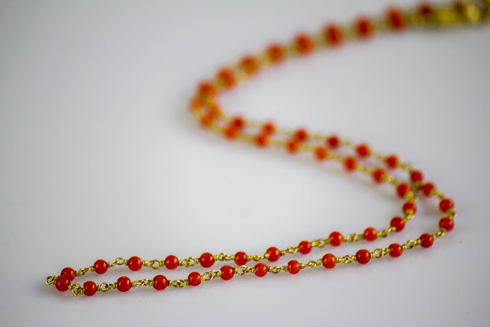 [Nessun Autore] 18kt yellow gold necklace and sphere corals, total gr 2.80. . .