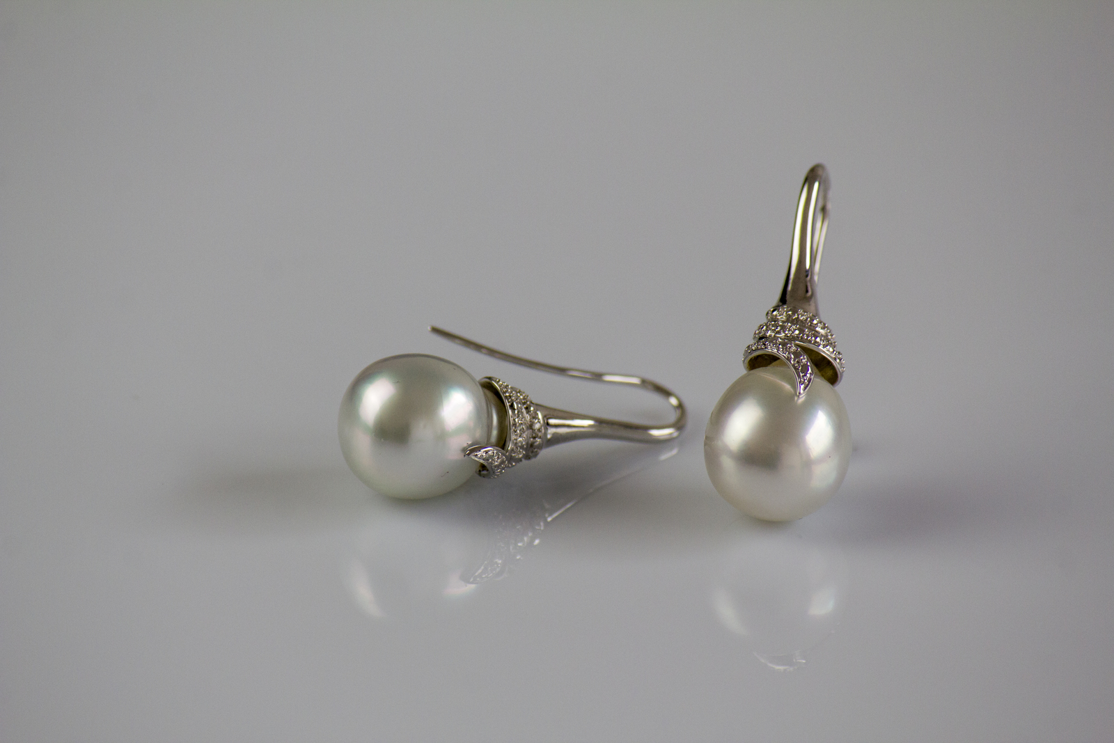 [Nessun Autore] Pair of white 18kt gold earrings with australian pearls. 12.7mm. . .