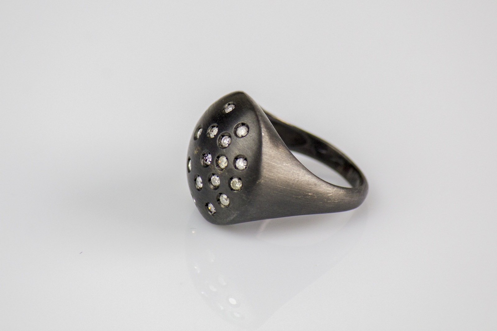 Lot 220 | Anello in argento brunito, gr 9.90. Diamanti iced cts 0.28. . . [Nessun...