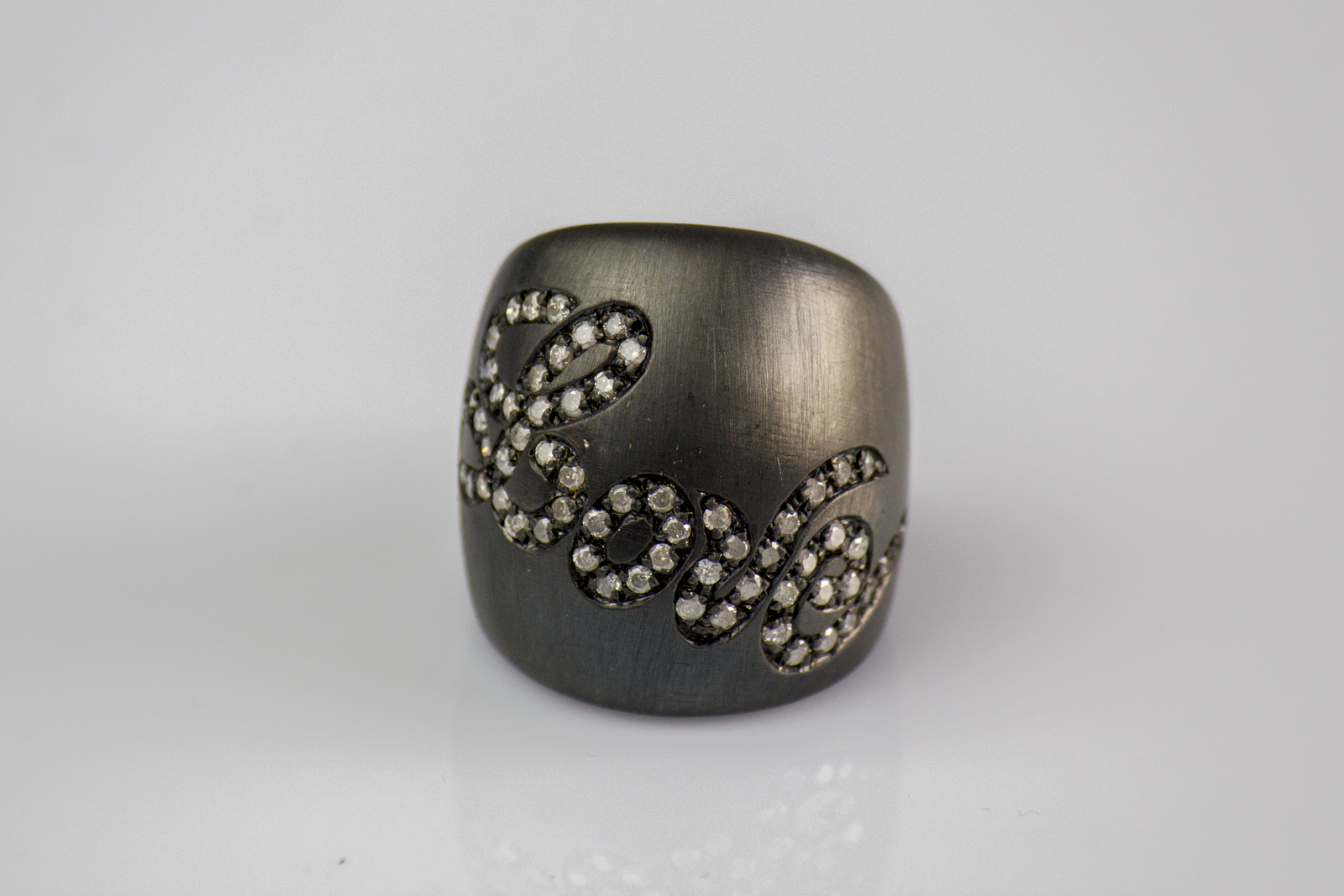 Lot 228 | Anello in argento brunito, gr 13.50. Diamanti cts 0.65. . . [Nessun Autore]...