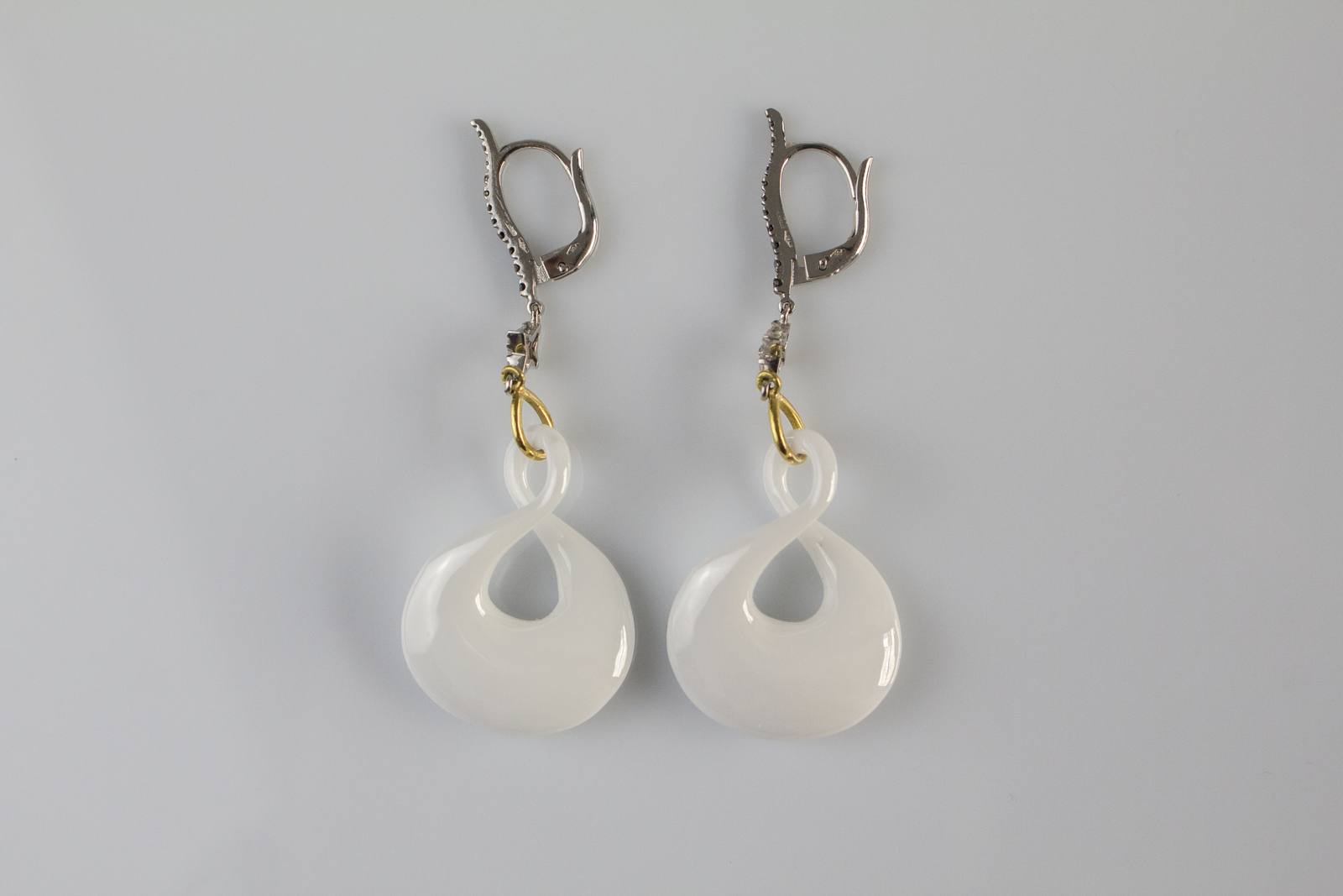 Orecchini in oro gr 3. Diamanti neri e bianchi cts 0.20 e ceramica. Firmati...