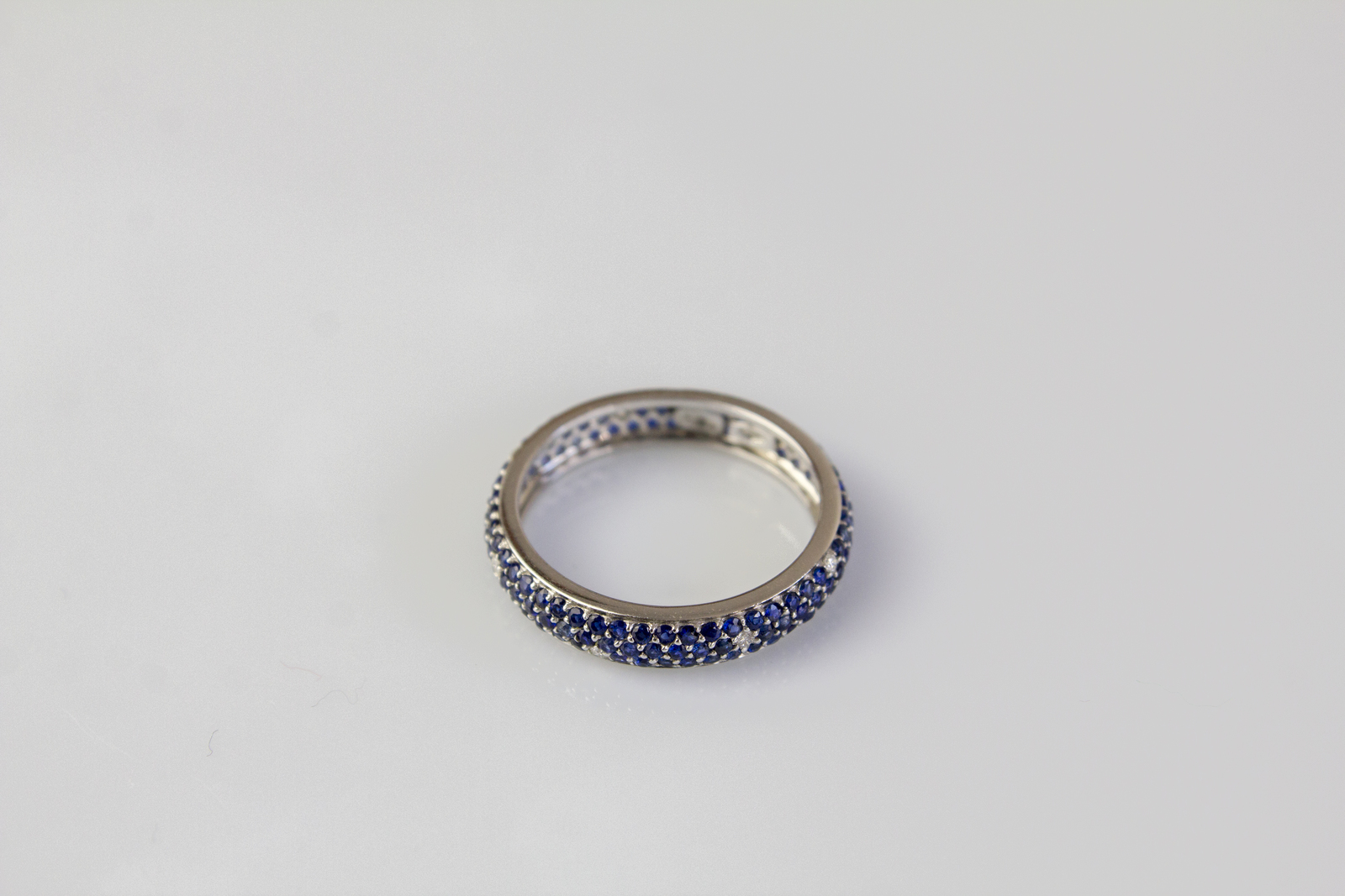 Fede in oro bianco 18kt, gr 2,45, con zaffiri cts 2 Circa e diamanti cts 0,10. . .