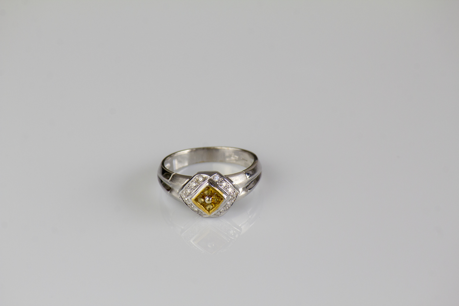 Lot 248 | Anello in oro bianco 18kt, gr 4.20. Diamanti cts 0.11 e quarzi citrini. . ....
