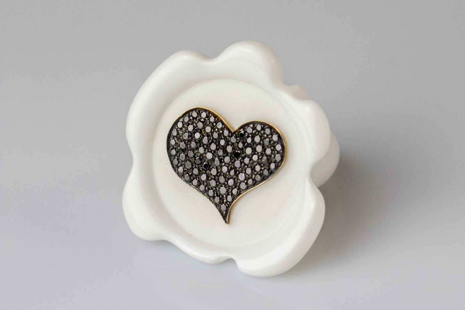Anello in ceramica bianca, oro rosso, gr 3.5. Diamanti neri cts 1.16. Firmati leader line.
