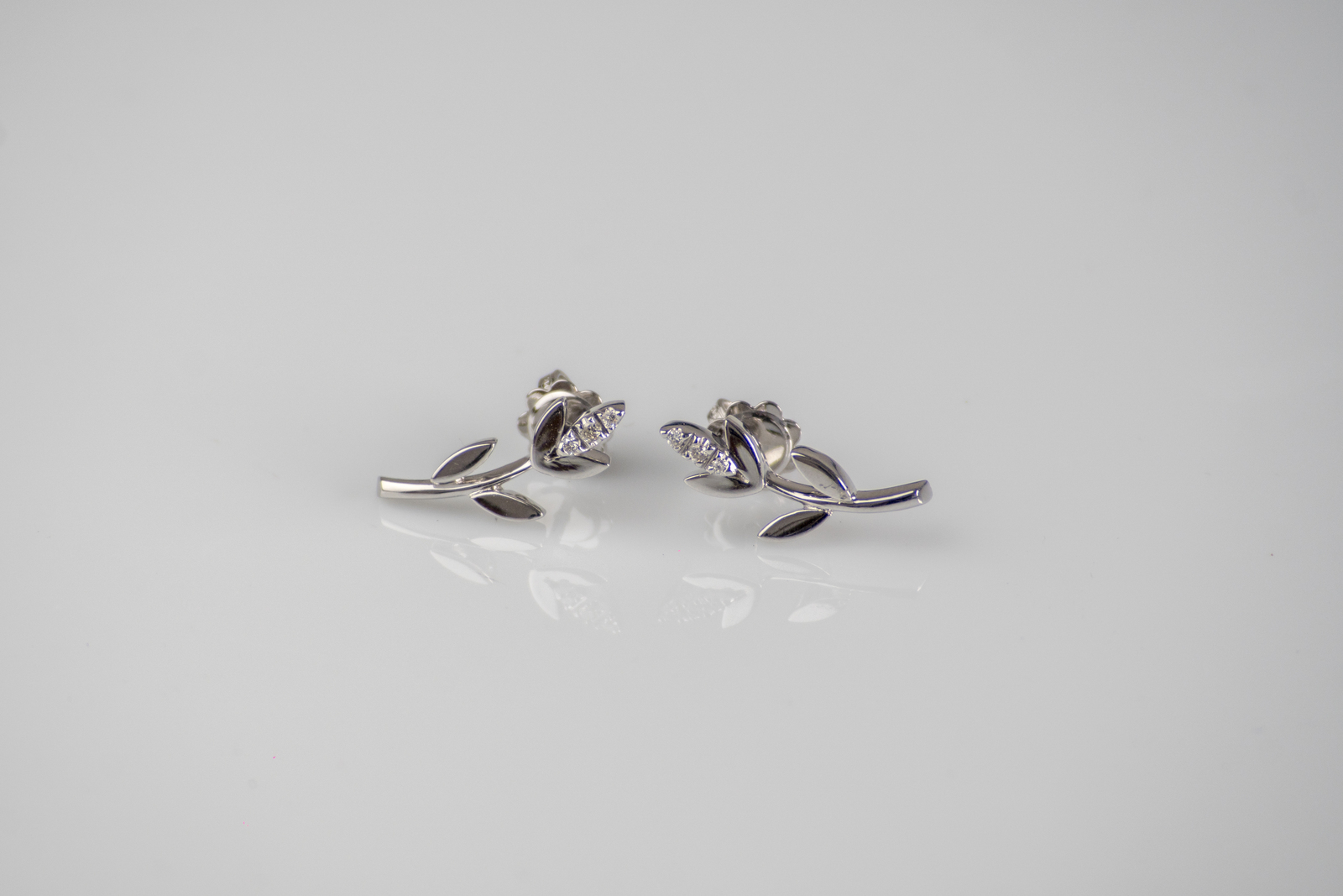 Lot 257 | Orecchini in oro bianco a fiore 18kt, gr 4.50. Diamanti cts 0.06. . . [Nessun...