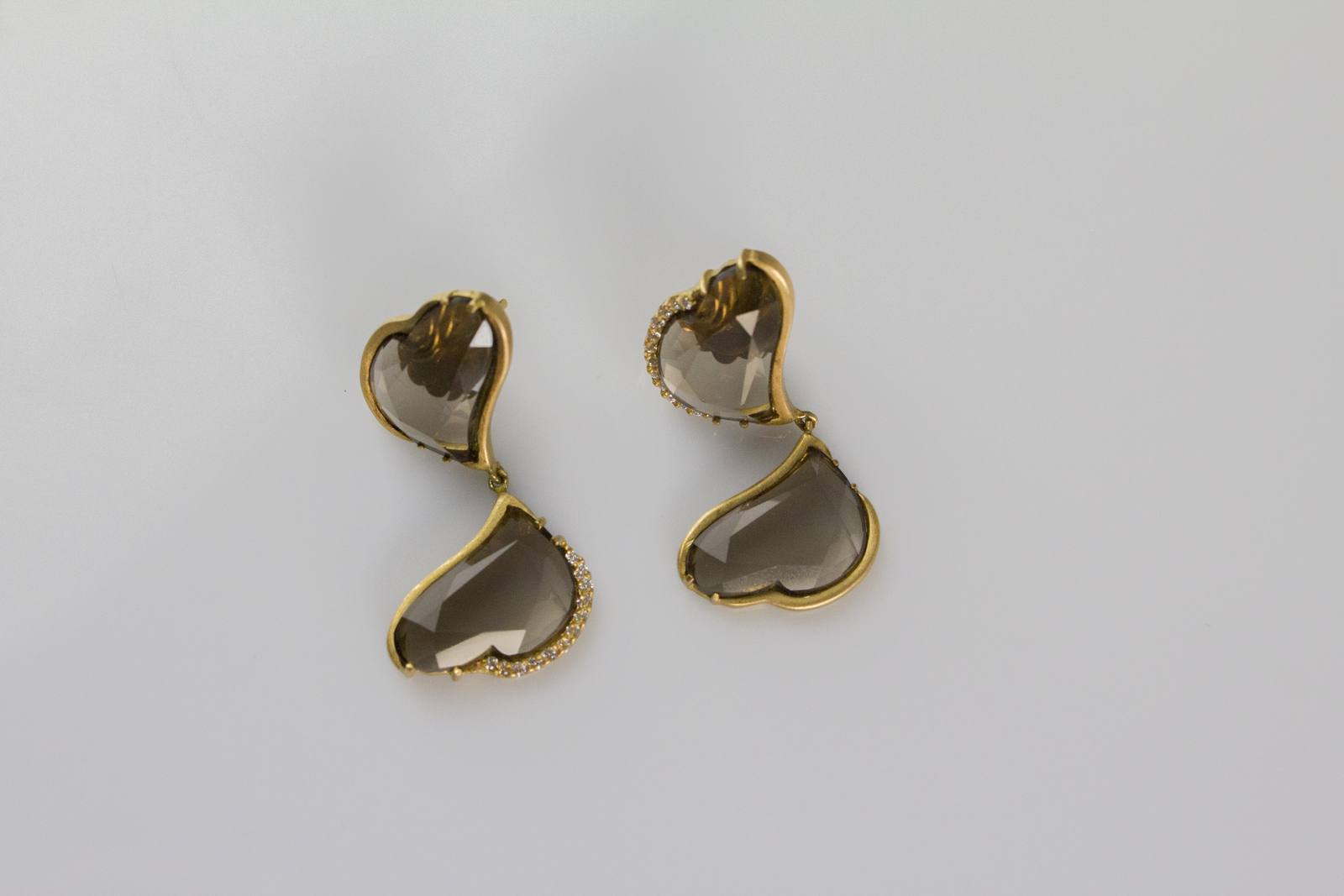 Orecchini in oro, gr 8.10. Diamanti cts 0.16 e quarzi fumè. Firmati leaderline.