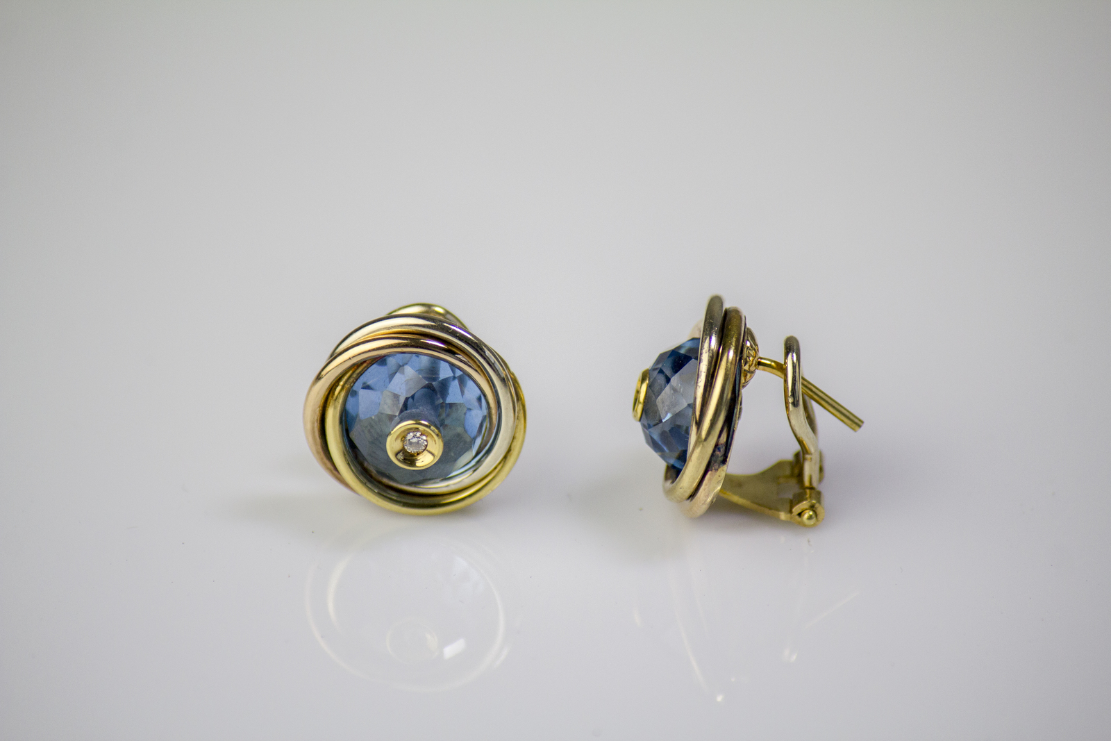 [Nessun Autore] 18kt yellow gold earrings, gr 11, with cristals and diamonds cts 0.04. . .