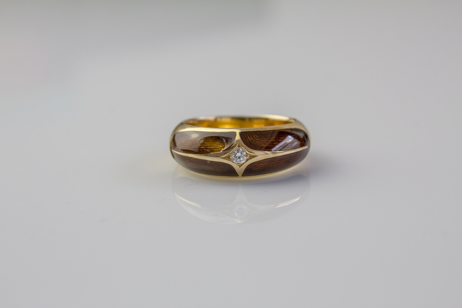 [Nessun Autore] 18kt Pink gold ring, gr 7.17, with enamel and diamond cts 0.07. . .