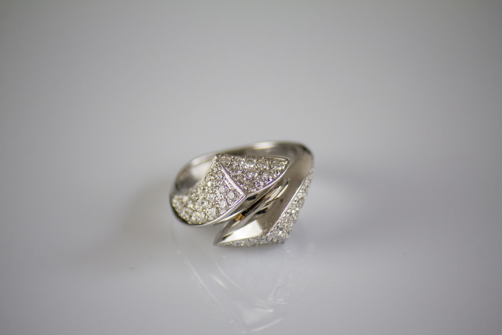 [Nessun Autore] 18kt white gold ring, gr 11.69. Diamonds cts 1.10. . .