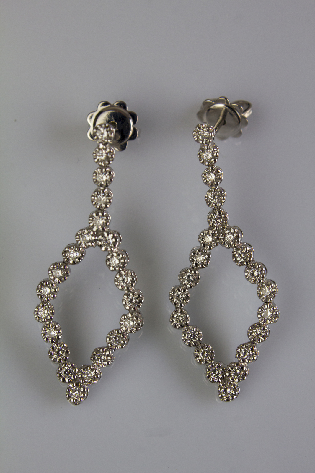 [Nessun Autore] White 18kt gold pair of earrings, gr 6.25. Diamonds cts 0.71. . .