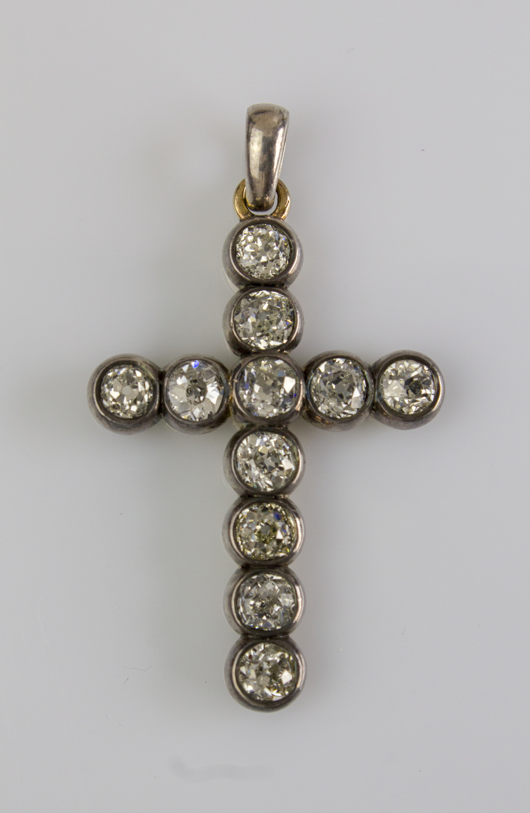 Ciondolo a croce in oro bianco e rosa 18kt, 7.72. Diamanti taglio antico cts...