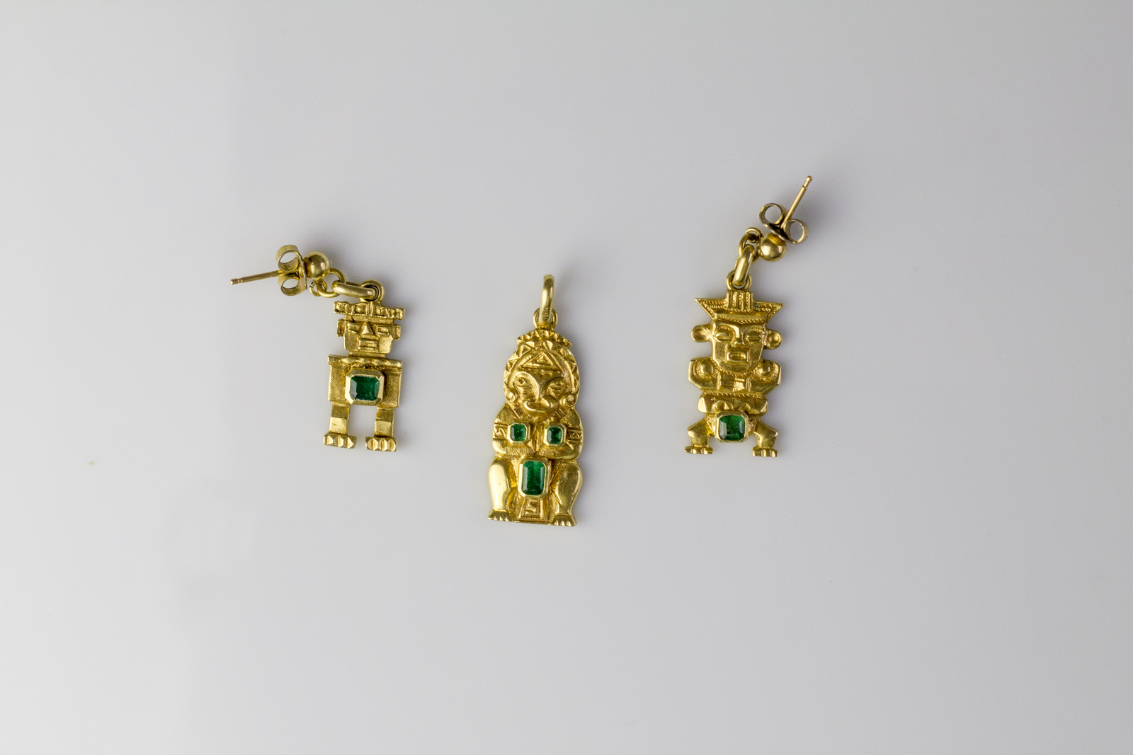 [Nessun Autore] 18kt yellow gold parure, gr 18.10. Columbian emerald cts 0.65 approx. . .