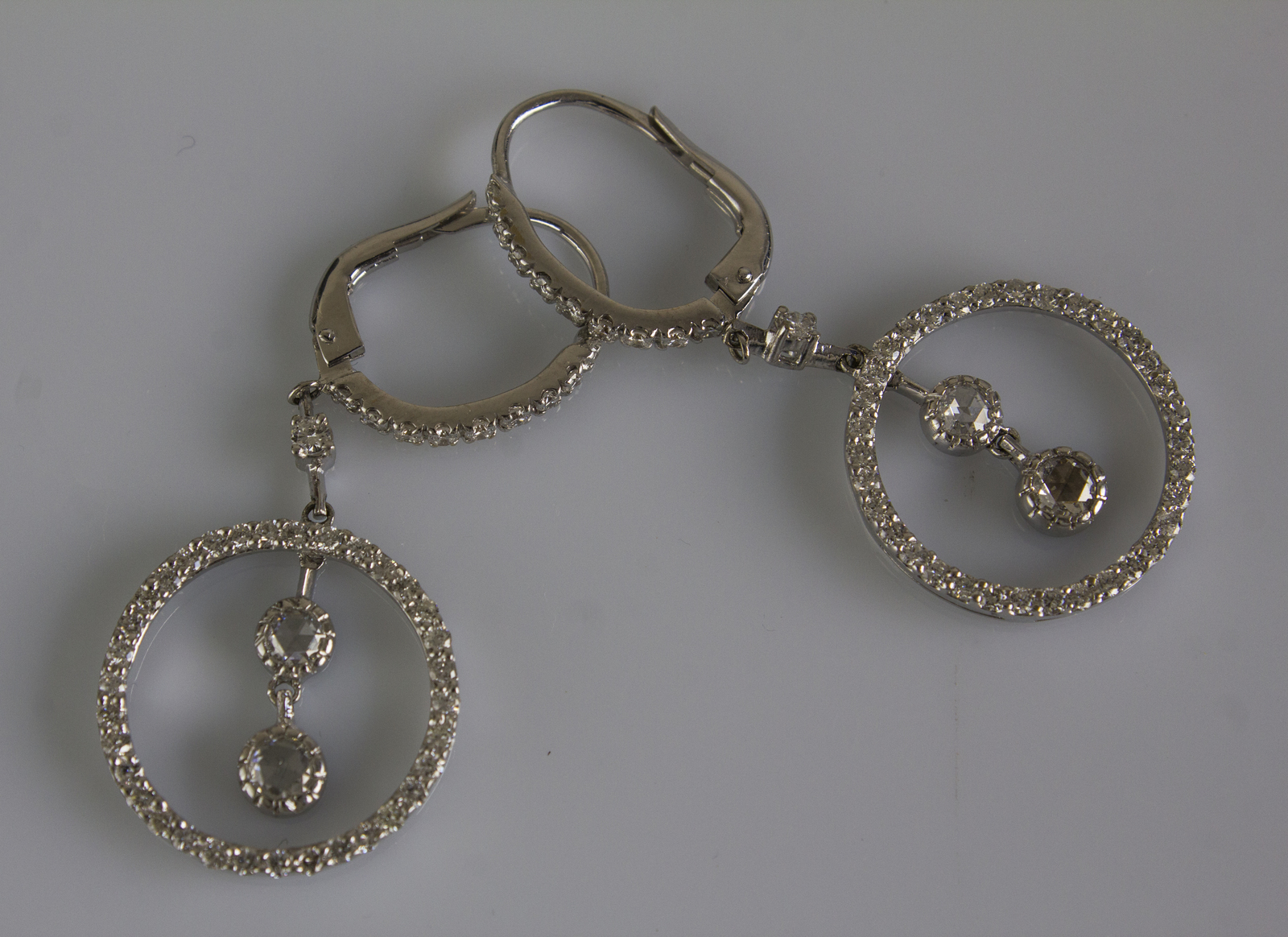 Lot 379 | Orecchini in oro bianco 18kt, gr 6.10. Diamanti cts 1.66. . . [Nessun Autore]...