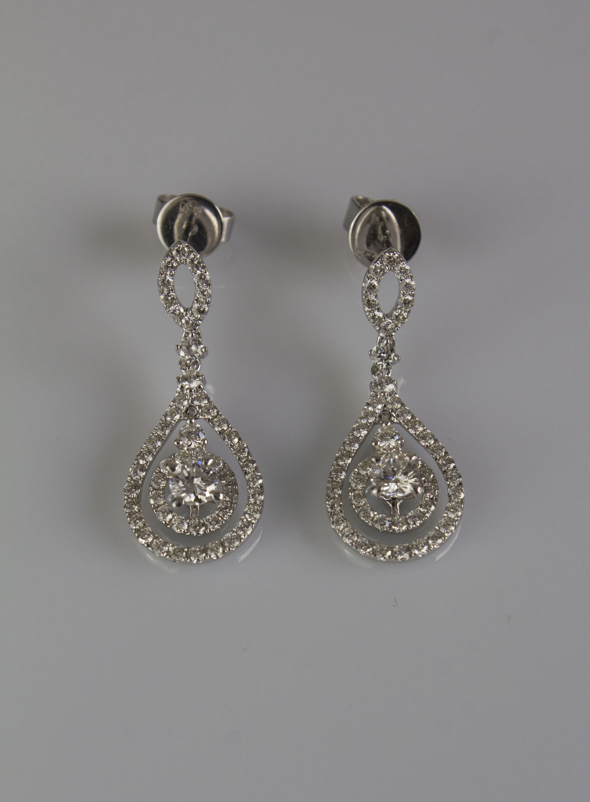 Paio di orecchini in oro 18kt, gr 5.30, con diamanti per complessivi cts 1.68. . .