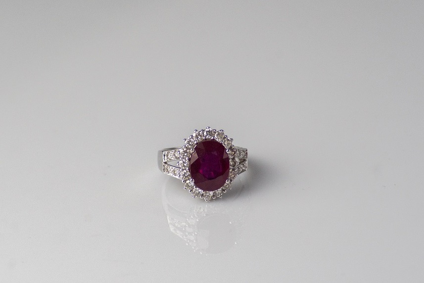 [Nessun Autore] 18kt white gold, gr 7 total. Diamonds cts 0.92. Glass filled Natural ruby cts 7.2. . .