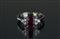 [Nessun Autore] White gold ring, gr 5.10, with rubies cts 1.20 approx and diamonds cts 0.30. . .