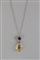 Girocollo in oro bianco 18kt, gr 5.20, con diamanti cts 0.33. Briolette di quarzo citrino e rubino cts 1.45. . .