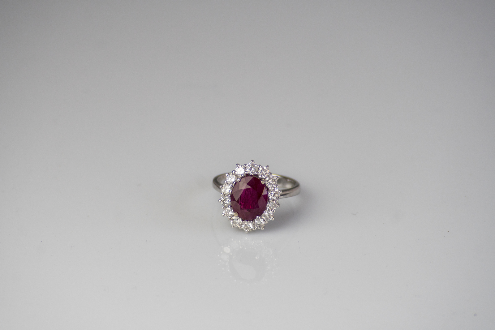 [Nessun Autore] 18kt white gold ring, gr 5.65. Ruby cts 3approx. Diamonds cts 0.70. . .