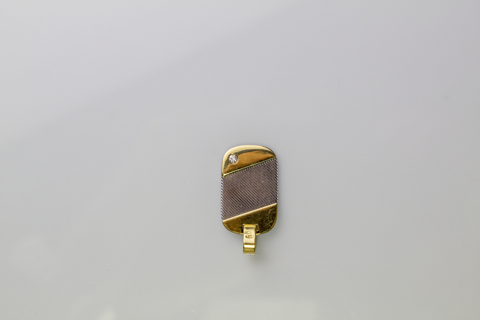 [Nessun Autore] 18kt white and yellow gold medal, gr 10.30, with diamonds cts 0.06. . .