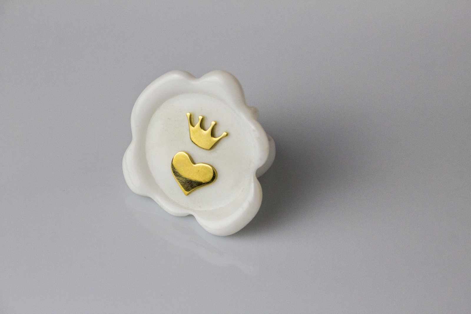 [Nessun Autore] White ceramic and yellow gold, gr 2.5. Signed leaderline. . .