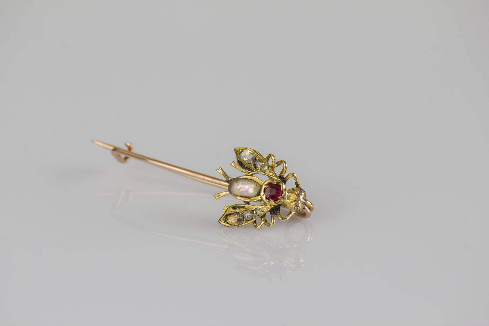 [Nessun Autore] Fly shaped pink gold brooch. . .