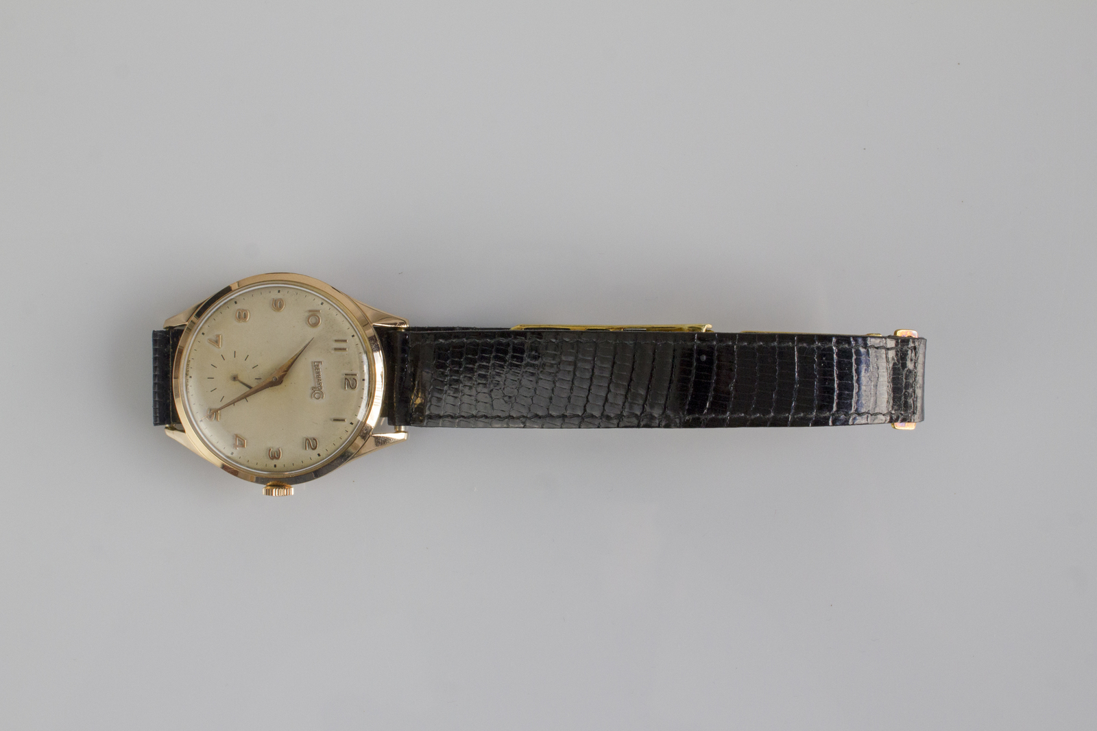 [Nessun Autore] Pink 18kt gold watch, signed Eberhard. Manual charge with 18kt gold deployant. . .