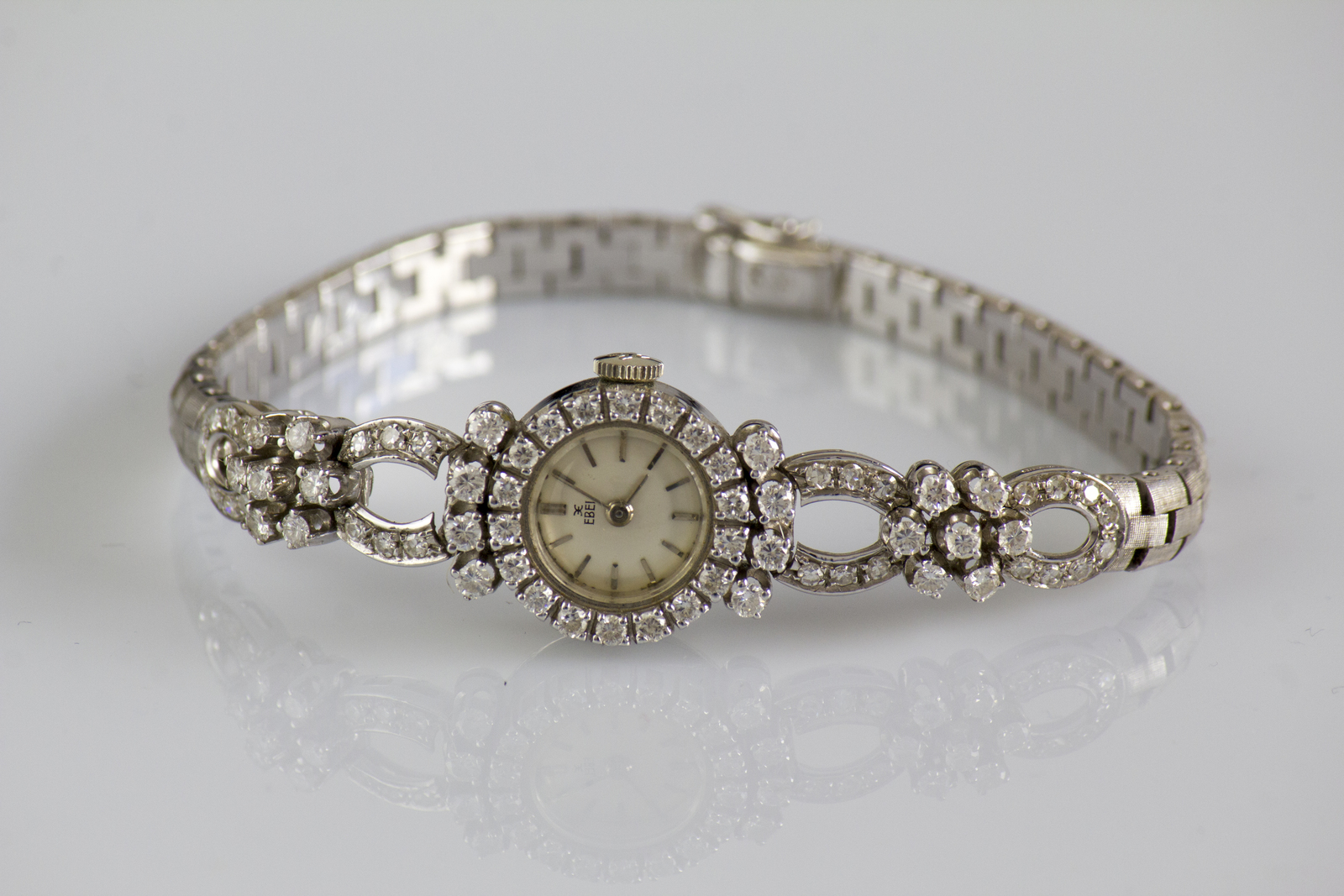 [Nessun Autore] White 18kt gold jewel watch, signed Ebel, gr 31. Diamonds cts 1.10. . .