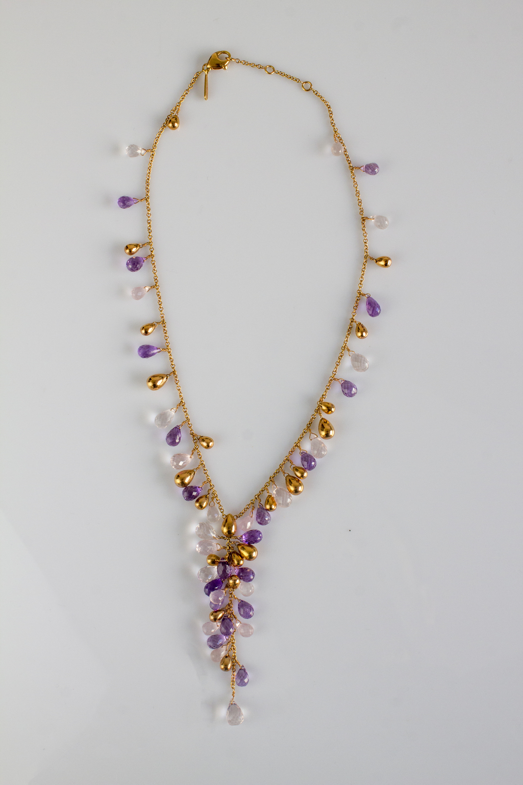 [Nessun Autore] Pink 18kt gold necklace with amethysts and rock crystal, total gr 25.35. Signed by Marco Bicego. . .