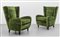 DUE POLTRONE, anni '50. Strutture e gambe in legno, imbottiture rivestite In...