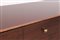 Legno di noce tinto all'anilina, interni in acero, ottone, piano in cristallo con carta colorata retro applicata.