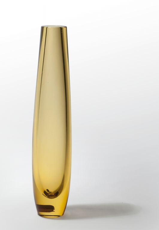 DINO MARTENS, AURELIANO TOSO un vaso in vetro ambra, anni '50. Due etichette...
