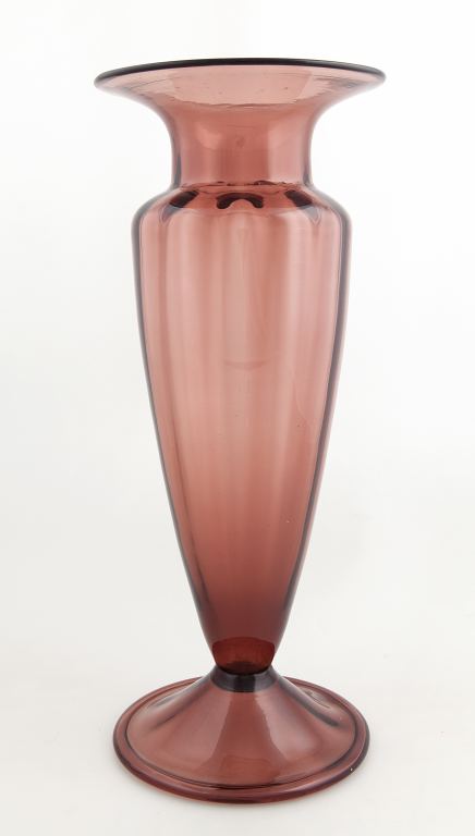 MURANO, anni "20Un vaso costolato in vetro soffiato trasparente ametista....