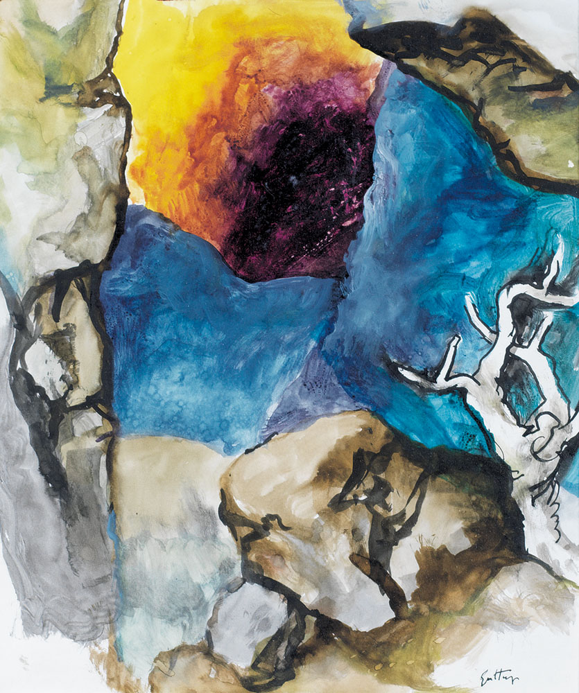 RENATO GUTTUSO Bagheria (Pa) 02/01/1912 - Roma 17/01/1987 - Paesaggio, 1962, tecnica mista China e acquerello su cartoncino incollato su tela cm. 36,5x31,5; firma in basso a destra, opera registrata presso gli Archivi Renato Guttuso come da dichiarazione su foto.