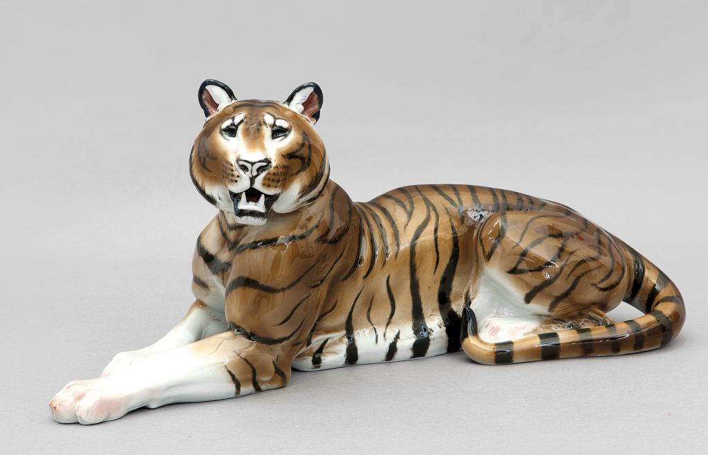 Lot 4115 | ROSENTHAL Figura di tigre, anni "50Porcellana. Cm 20 (h) x 45 x 15.