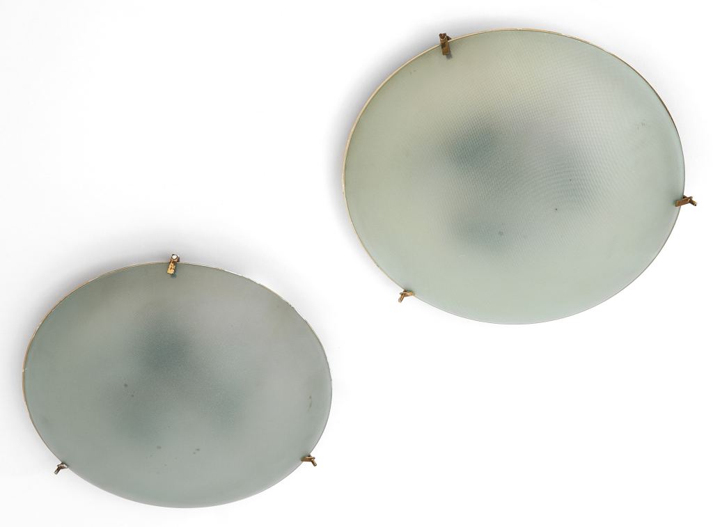 DUE PLAFONIERE, anni "50. Alluminio laccato, ottone, vetro zigrina\to....