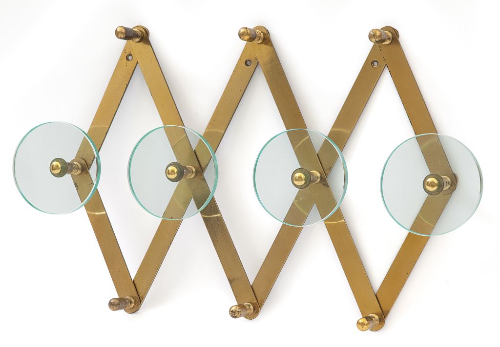 UN APPENDIABITI, anni '50. Ottone, cristallo. Altezza minima cm 15, larghezza...