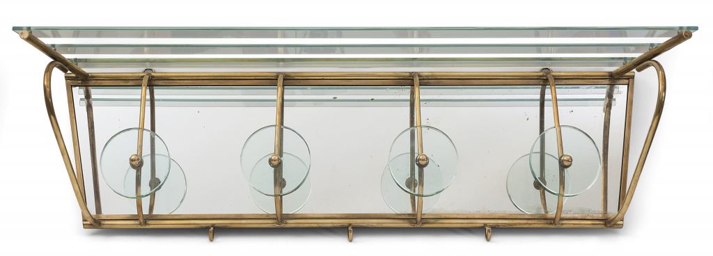 UN APPENDIABITI, anni '50. Ottone, cristallo molato, cristallo argentato. Cm...