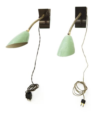 DUE LAMPADE A PARETE A MORSETTO, anni '50. Acciaio verniciato, ottone,...