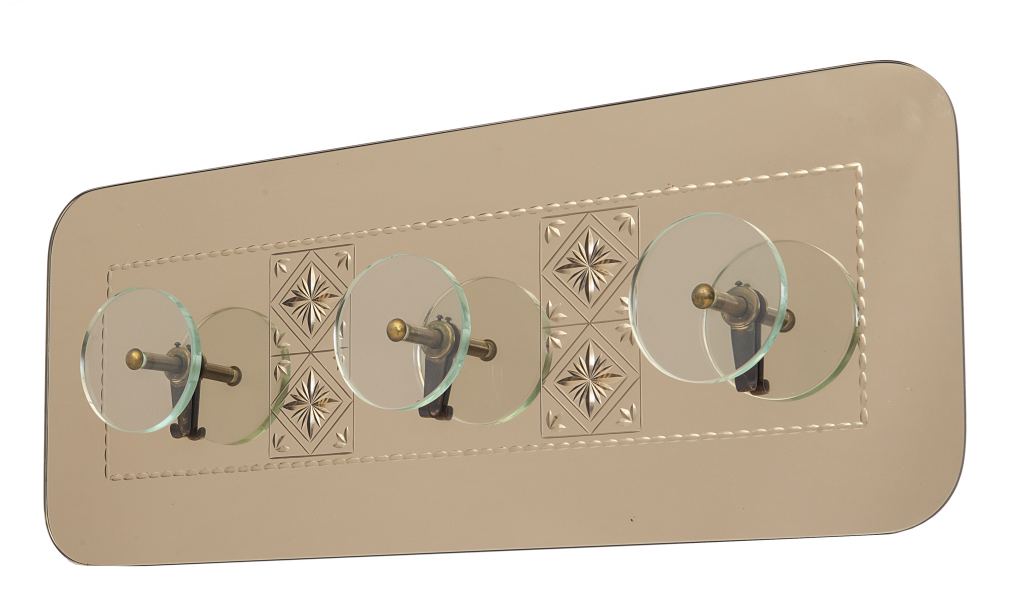 UN APPENDIABITI DA PARETE, anni '60. Cristallo inciso argentato, ottone,...