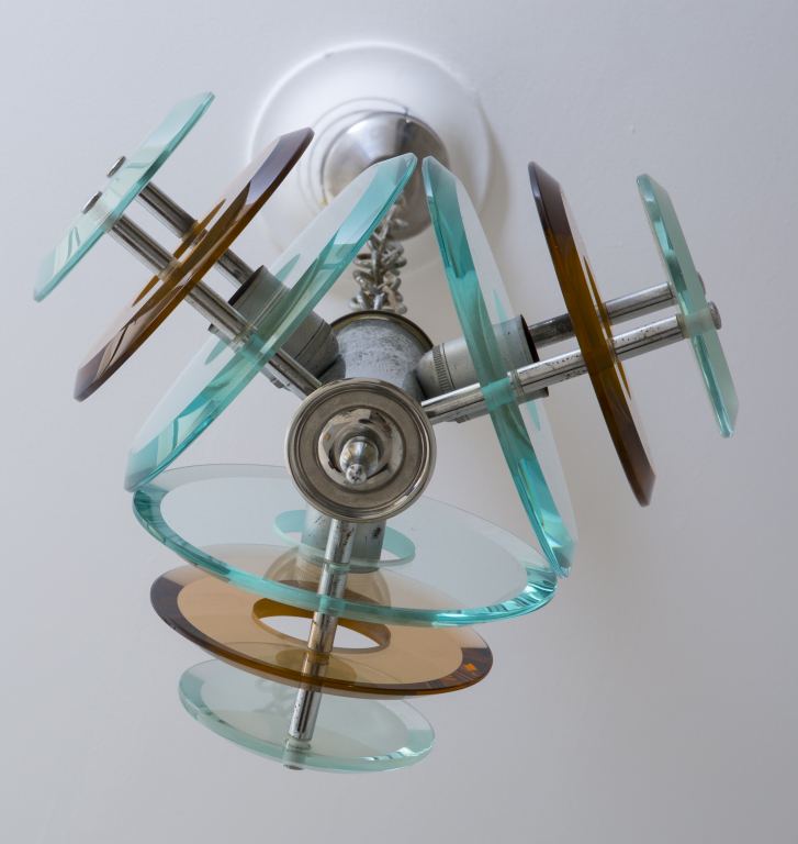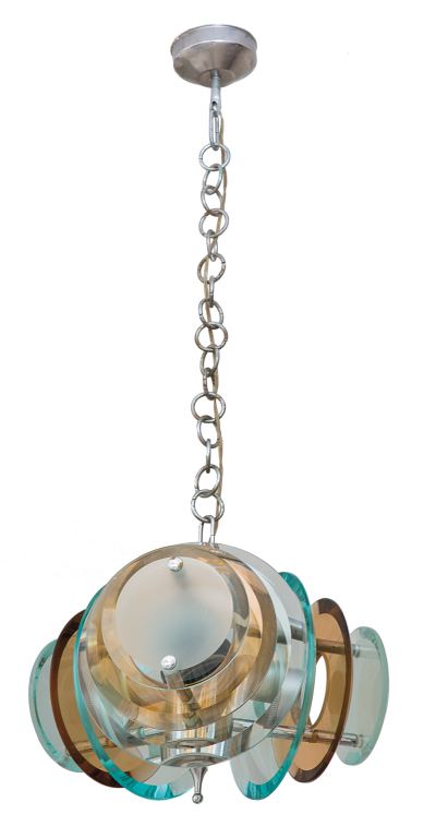 UNA LAMPADA A SOSPENSIONE E DUE DA PARETE, anni '60. Metallo cromato,...