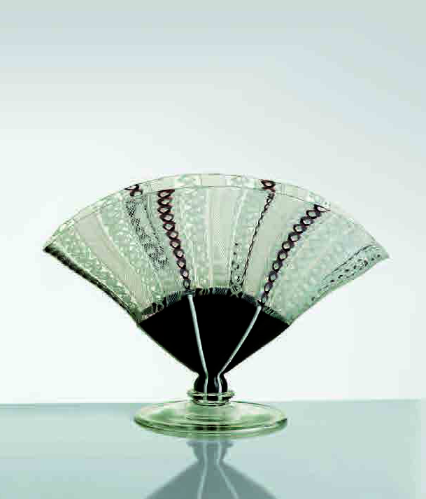 Fulvio Bianconi Vaso a ventaglio con corpo in vetro a incalmo, con base in vetro nero, 1950 circa. Firma ad acido: Venini Murano Italia, altezza cm 20. Bibliografia: F. Deboni, I vetri Venini, Torino, 2007, fig.179