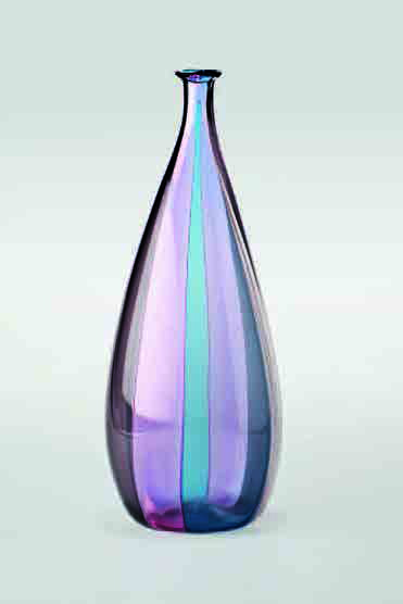 Fulvio Bianconi Vaso in vetro a spicchi nei toni del rosa e dell’azzurro, 1953 circa. Firma incisa: Venini Italia, altezza cm 36,5