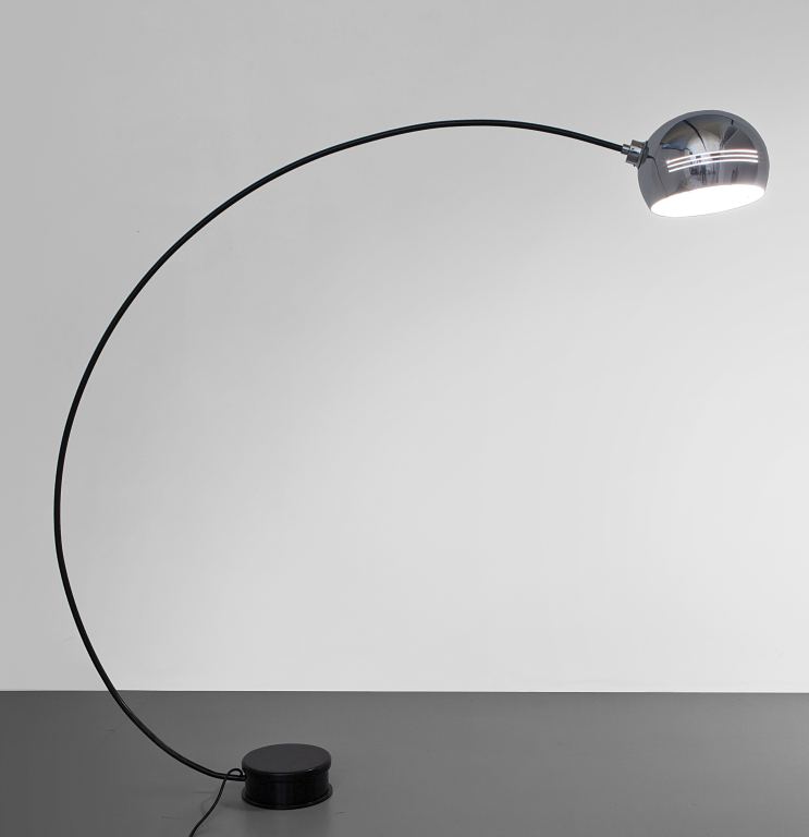 UNA LAMPADA DA TERRA AD ARCO, anni '70. Acciaio cromato, ottone cromato....