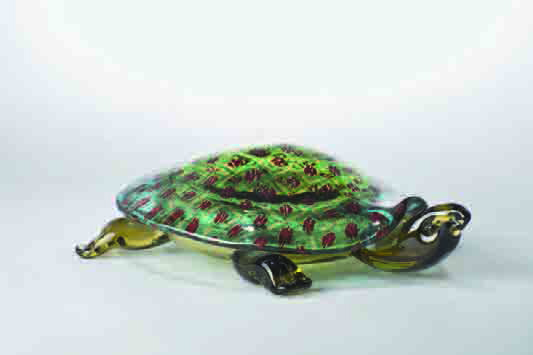 Ludovico Diaz de Santillana Figura di tartaruga con carapace decorato a murrine rosso e blu, 1965 circa, cm 8x30x22 Bibliografia: A. Venini Diaz de Santillana, Venini: catalogo ragionato 1921-1986, Milano, 2000, pag.174; fig.133