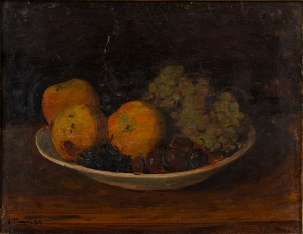 Achille Funi, Natura morta, 1944 Olio su tela, cm. 37x48 Firma in basso a sinistra. Bibliografia: "Achille Funi", Catalogo ragionato dei dipinti,Leonardo Arte,pag. 258 tav. II.401 Timbro per provenienza della Galleria del Milione, Milano, sul retro.