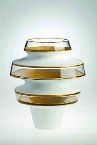 Emmanuel Babled Vaso “Ring Tower II” in vetro soffiato incamiciato opaco e giallo successivamente molato, 2005. Firma incisa: Venini 2005 Emm. Babled P.d.A., altezza cm 39.