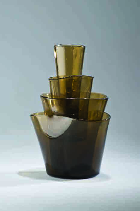 Mario Bellini Vaso in vetro color tè modellato come quattro vasi a incastro applicati a caldo, 1992, altezza cm 34,5
