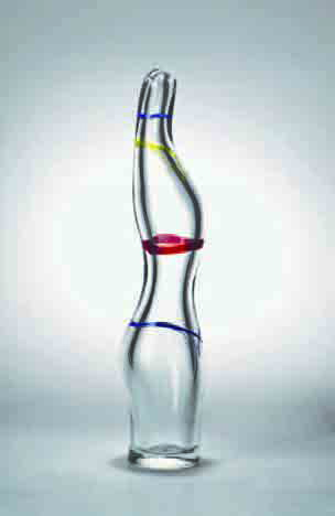 Fulvio Bianconi Vaso “Donna” in vetro sagomato decorato da sottili fasce orizzontali blu, giallo e rosso, 1989, altezza cm 44